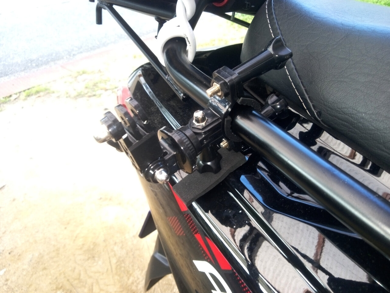 次に、バイクに取り付ける位置を変えてみます。