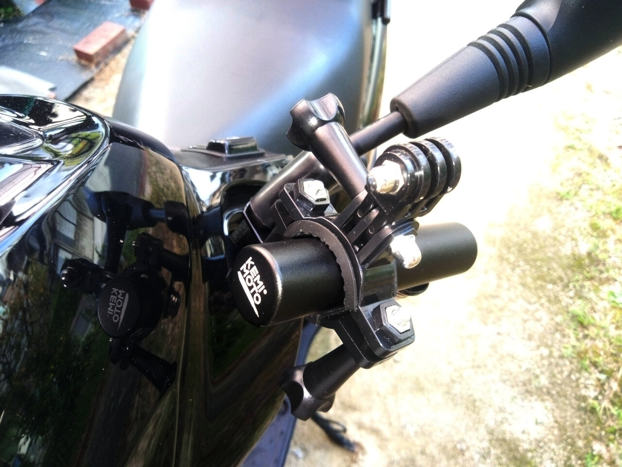 最初にミラーに共締めして取り付けてるマウントバーに付けてみました