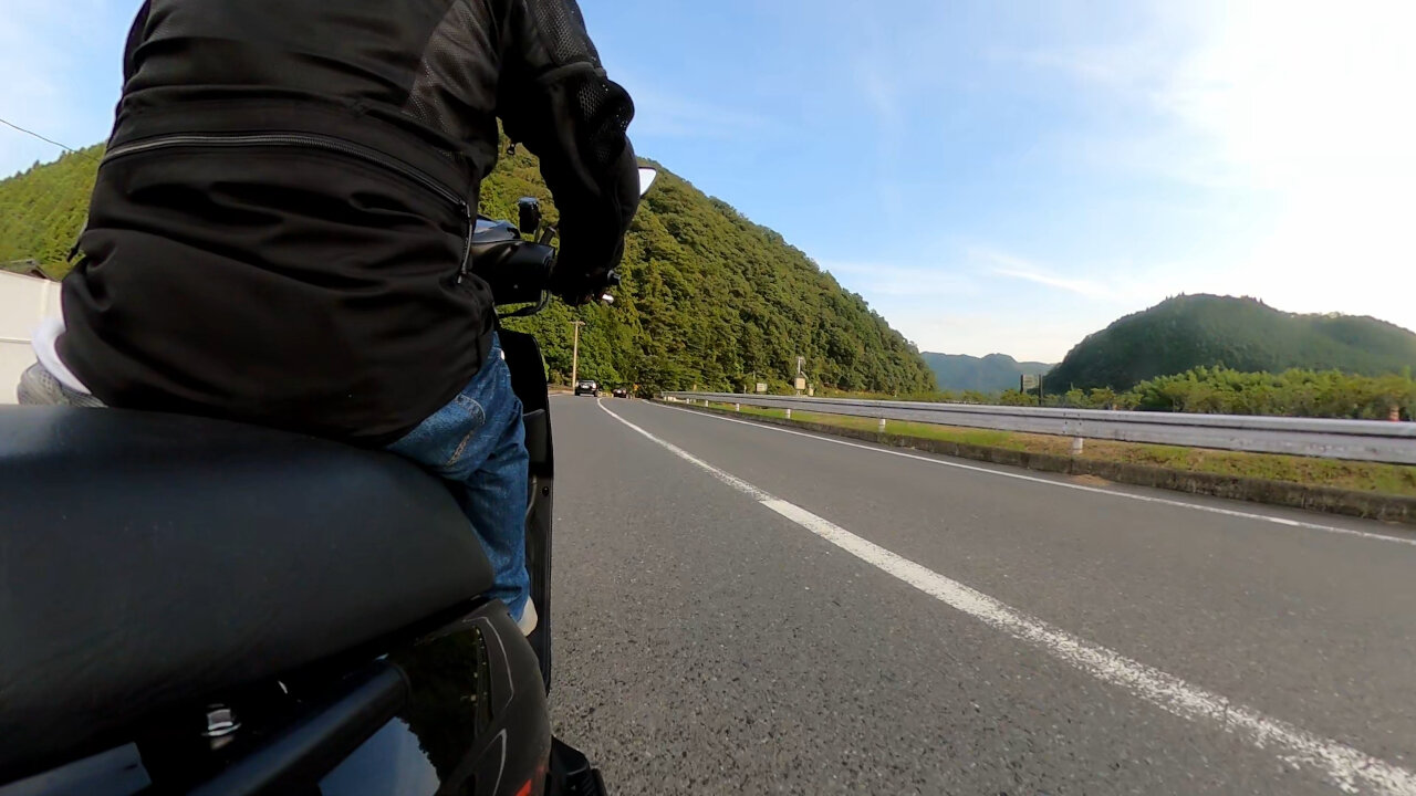 いわゆる車載動画っぽいですね。カメラが全く動かないので、4輪車にドラレコ付けて撮ったような感じ。水平もバッチリ・ブレもなしなので安定感は半端ないです。