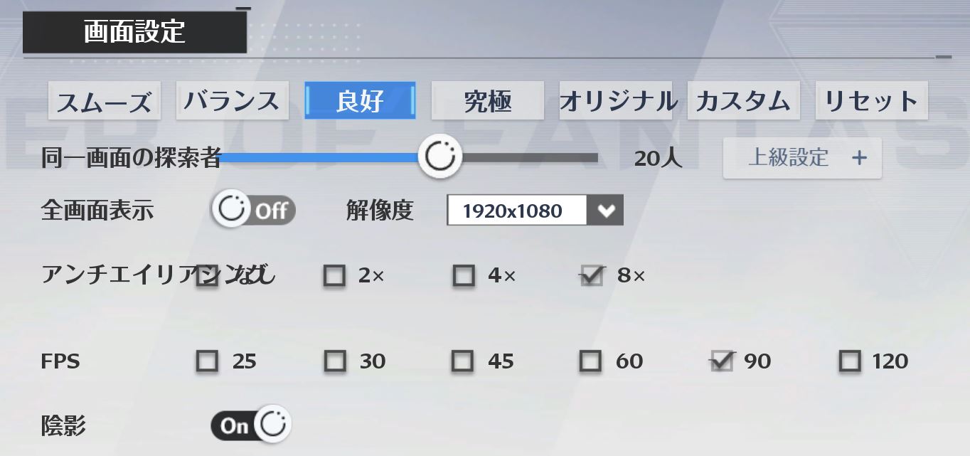 とりあえず設定を[良好]から[バランス]にしてみるも、それほど変化がない…。