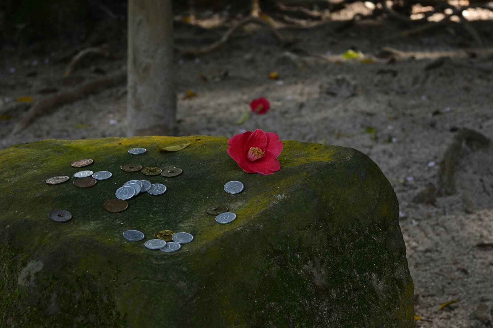 そりゃ神域だから宮司さんも手ぇ突っ込んで拾うとかできないわな。